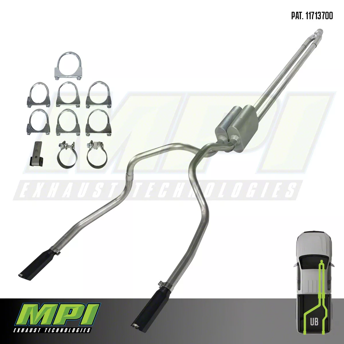 Construction and Durability. Featuring a polished chrome finish with matte black dual tips, this exhaust system is crafted from high-quality 2.5-inch stainless steel tubing for superior corrosion resistance and durability. Engineered to optimize exhaust flow, it improves overall performance while offering an aggressive, deep sound.