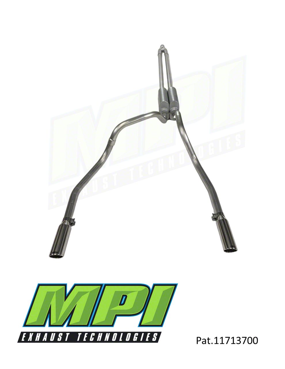 Application. The MPI Exhaust Technologies Turbo Series Clamp-On Dual Exhaust System with Polished Bright Chrome Tips fits 2007-2013 5.7L Tundra models.