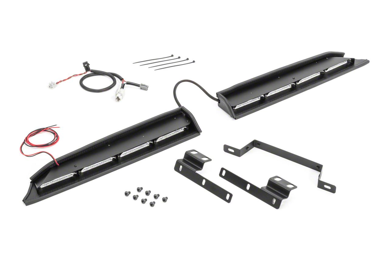Application. The mPower Split Two-Piece Interior Amber/White LED Light Bars fits all 2018-2024 Jeep Wrangler Jl W/ Adaptive Cruise Control models.