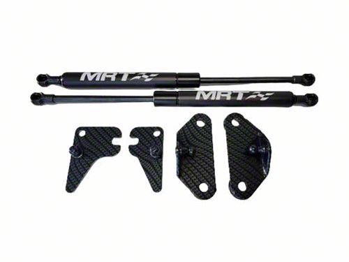 Construction and Appearance. These MRT Hood Struts are manufactured from top-notch steel and are finished with a black carbon fiber look. All components are made in the USA.