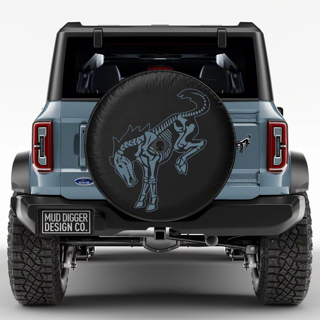 Application. This Mud Digger Designs Spare Tire Cover with Area 51 Skeleton Bronco Logo for 315/70R17 Tires; Black fits 2021–2026 Bronco models equipped with 315/70R17 tires.