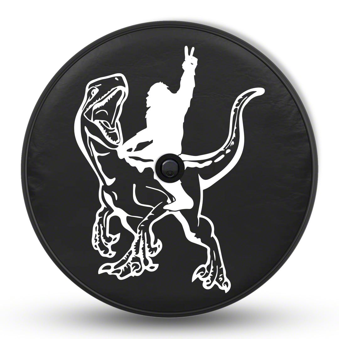 Construction and Appearance. Constructed from high-quality marine-grade vinyl, this spare tire cover delivers exceptional strength and longevity. The black surface provides a clean, classic look that contrasts sharply with the vivid white Raptor Sasquatch logo, which is printed using UV- and fade-resistant ink for lasting clarity. The rugged material also resists cracking and shrinking, even in extreme temperatures.