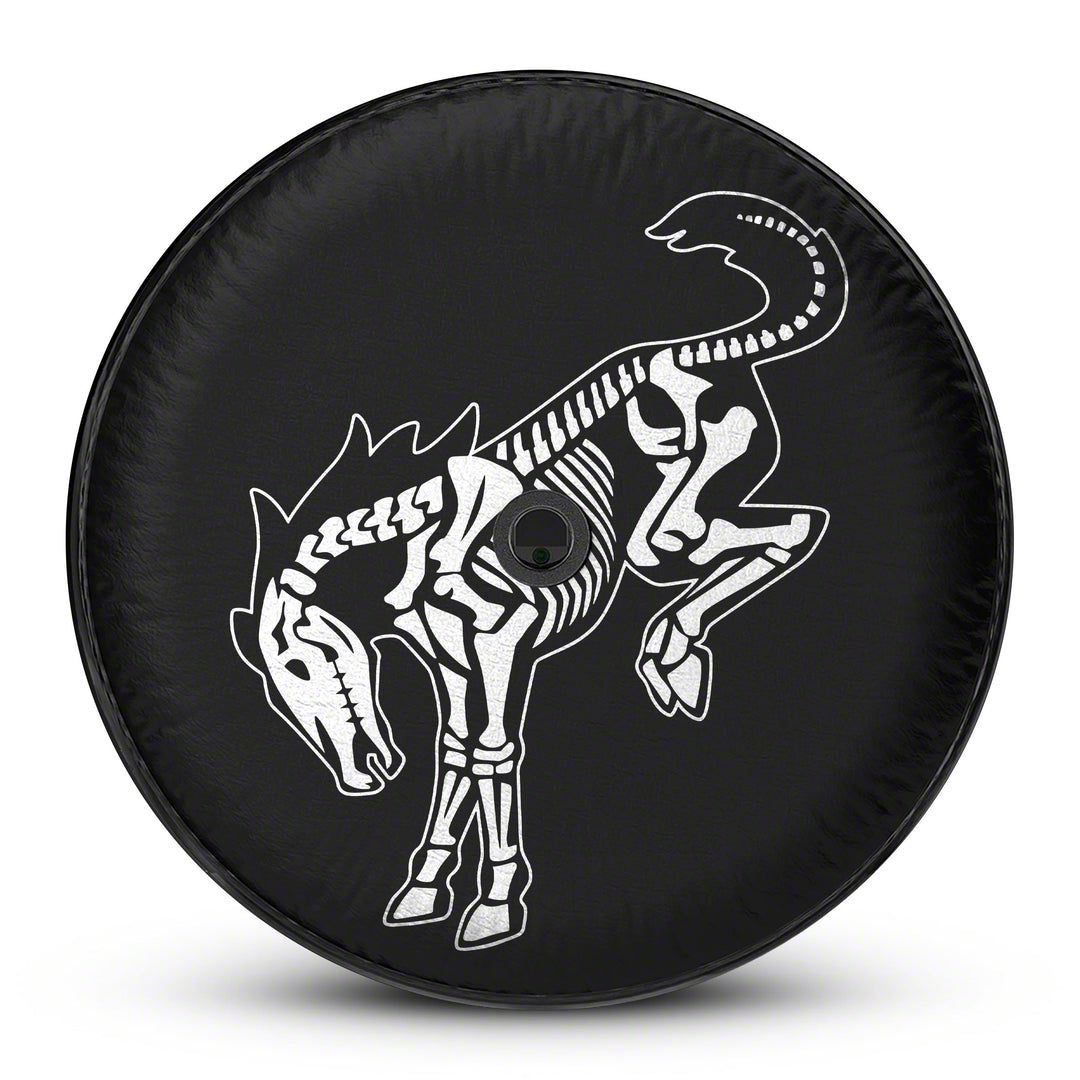 Durable Spare Cover. The Mud Digger Designs Spare Tire Cover with White Skeleton Bronco Logo for 255/70R18 Tires offers dependable protection for your spare tire. Designed to endure harsh weather and resist wear, this product is a smart choice for Bronco owners. Its tailored design ensures a sleek look while maintaining essential tire coverage.