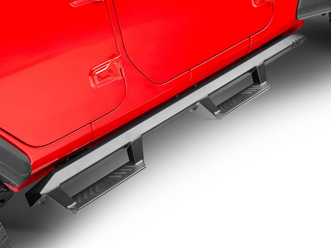 Application. These N-Fab EpYx Cab Length Textured Black Nerf Side Step Bars fit all 2018-2026 4-door Jeep Wrangler JL models.