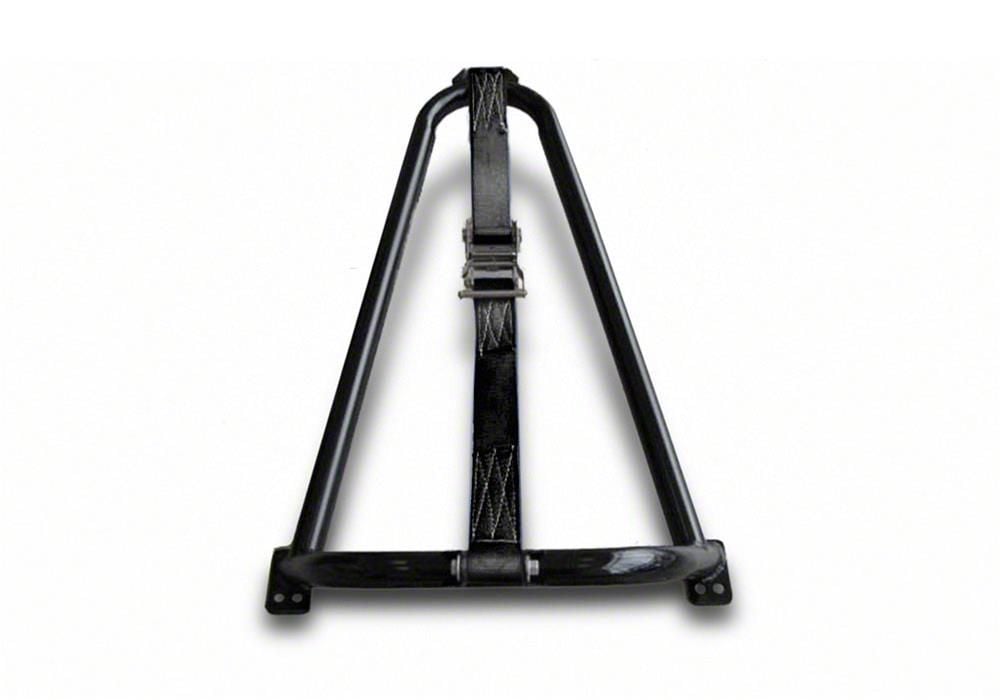 Durable Tire Carrier. This bed-mounted tire carrier sports a tough 0.095 wall tubing construction. This type of build enables the carrier to provide reliable support to your heavy spare tire without it bending or breaking. It also comes with a black ratchet strap that’s made of strong nylon material, making it highly elastic and tear-resistant. Furthermore, this tire carrier is protected by a gloss black coating to help maintain its pristine condition.