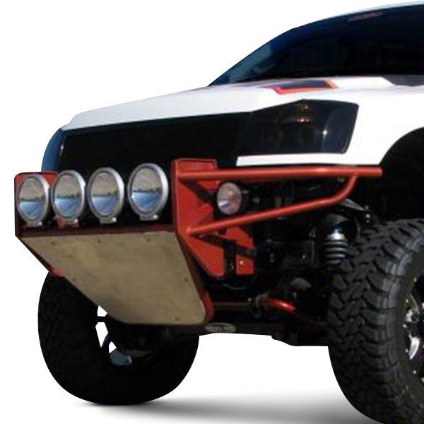 Assertive Road Clearance. Confidently brake away from rubble and debris with the N-Fab R.S.P. Pre-Runner Front Bumper and experience the unbeatable benefits its rugged strength provides. With its tough 3/16-inch steel construction and aggressive appearance, this bumper not only adds a touch of attitude to your vehicle but also provides unparalleled protection against off-road hazards and unexpected collisions.