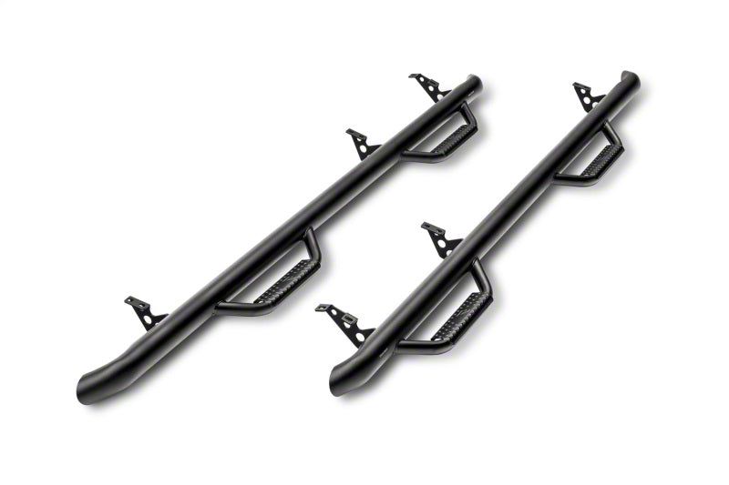 Built with today's work truck in mind, N-FAB offers its patented hoop step design and innovative mounting system in a Cab Length configuration. Designed with classic N-FAB styling, Cab Length Nerf Steps are ideal for flat bed trucks, stake bed trucks, vehicles with campers, and even trucks with side exhaust forward of the rear wheels. Manufactured from .084 wall tubular steel, Cab Length Nerf Steps provide all of the strength and durability for which N-FAB is known. All Nerf Steps have a 5 year Finish and Lifetime Workmanship Warranty.