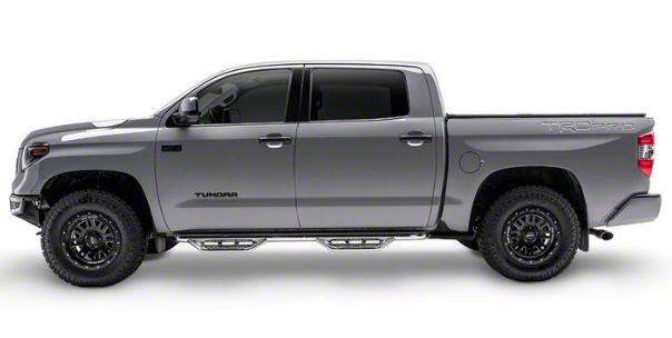 Stylish and Functional. Boost your Tundra's style and functionality with this pair of polished stainless steel N-Fab Cab Length Podium Nerf Side Step Bars. With their heavy-duty construction, they can help you get in and out of your truck in a safer and more convenient way. What’s more, they fit high and tight to your truck’s body for a cleaner look and additional side protection from dents, nicks, and scratches. In terms of style, these side step bars offer a modern and sleek appearance with their striking polished finish.
