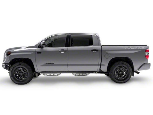 Application. These polished stainless steel N-Fab Cab Length Podium Nerf Side Step Bars can be installed on 2007-2021 editions of the Toyota Tundra CrewMax.