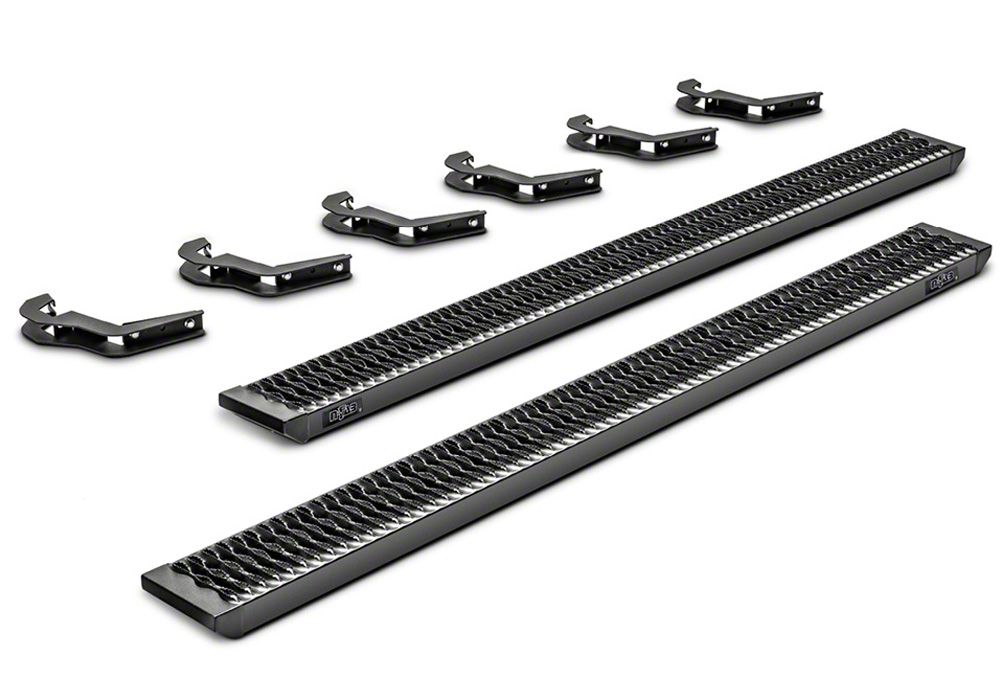 No Drill Installation. Installing these N-Fab Growler Fleet Sure Grip Running Boards can be done at home and no drilling or welding is required. The vehicle-specific, bolt-on brackets simplify the installation process.