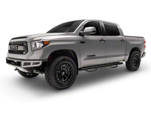 Safe Truck Access. Access your Tundra safely with the N-Fab Wheel 2 Wheel Gloss Black Nerf Side Step Bars. These all-steel nerf side step bars come with built-in dropped side steps, equipped with wide, high-traction step plates. This design provides you and your passengers with a stable foothold, ensuring safe and easy truck access. What's more, these nerf bars mount close to your truck’s body, functioning as protection against rock-shards, concrete chips, and other debris that can potentially damage your rocker panels.