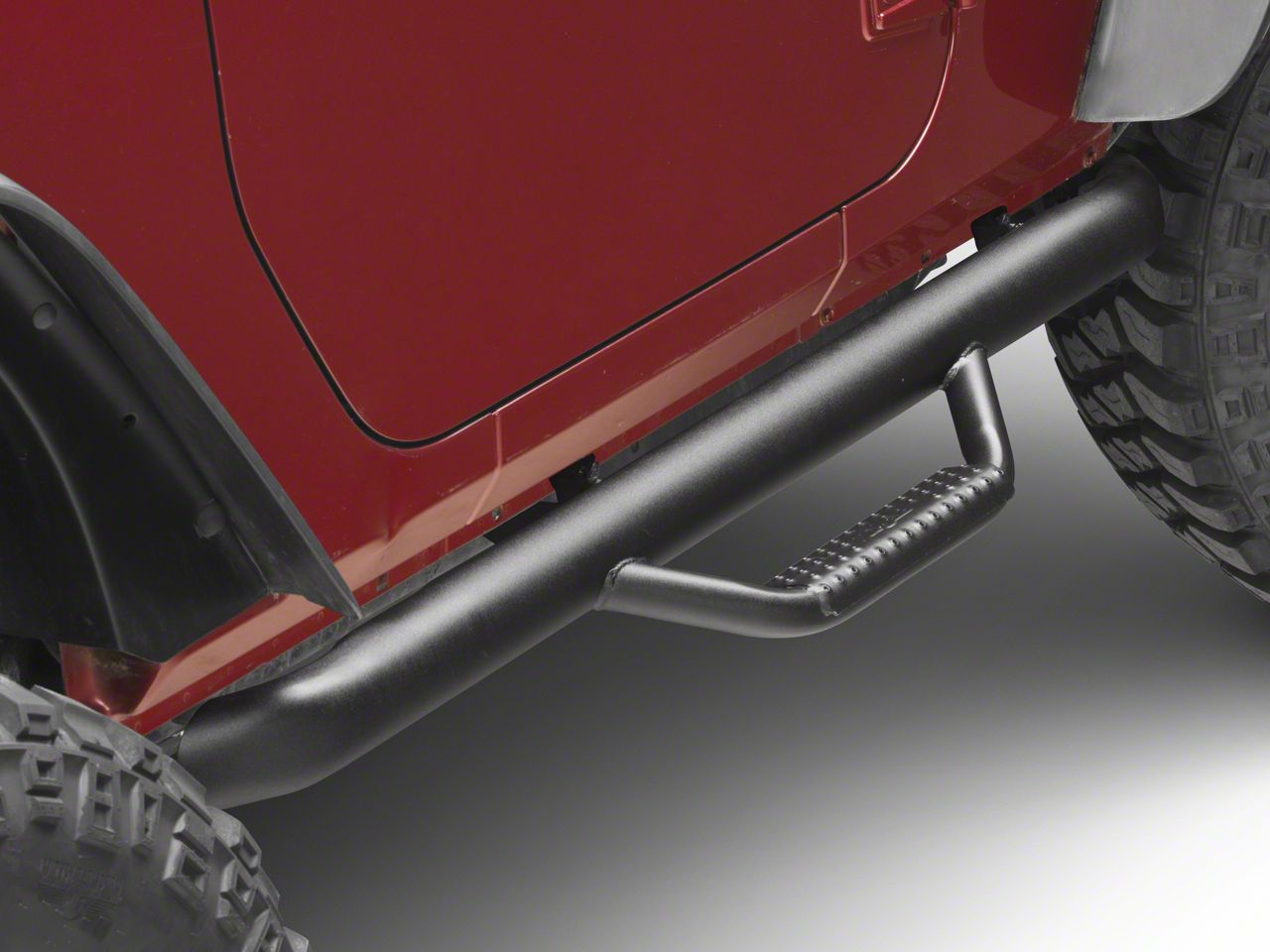Easy Access. Your Jeep Wrangler looks cool for sure, but how cool do you look getting in and out of it? Install a N-Fab Nerf Steps to make that maneuvering easier for both you and your passenger. Not only will these bars serve a useful function, but they'll add a distinctive element of ruggedness to your Jeep, too. This pair of side steps fit perfectly high and tight right under the doors.