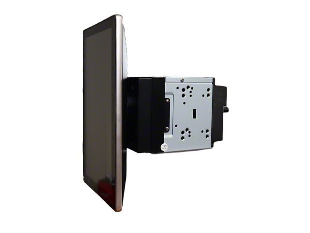 Construction and Appearance. Featuring a matte black finish trim and an industry-standard double din chassis, the unit offers both ruggedness and modern aesthetics. The rotating tablet display is integrated into a solid housing, giving it a sleek appearance while ensuring long-term durability and daily usability.