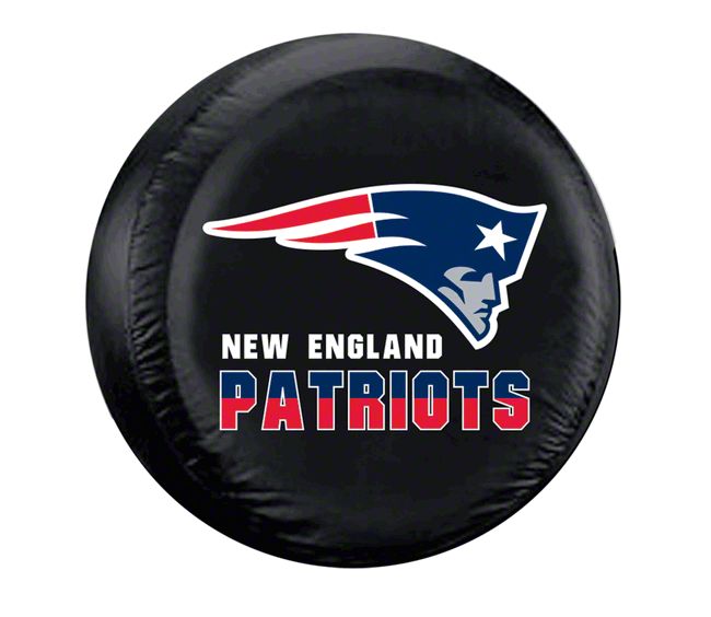 New England Patriots NFL Spare Tire Cover; Black (66-18 Jeep CJ5, CJ7, Wrangler YJ, TJ & JK)