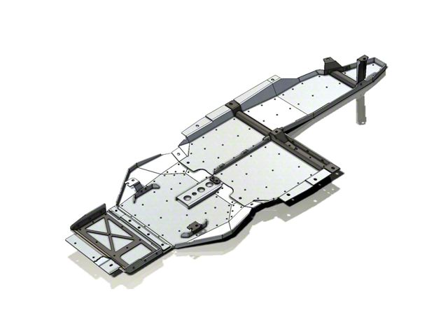 Application. The Next Venture Motorsports Belly Skid Plates; Bare Aluminum fits 2021-2025 Bronco 4-Door with Transmission Crossmember Bracing.