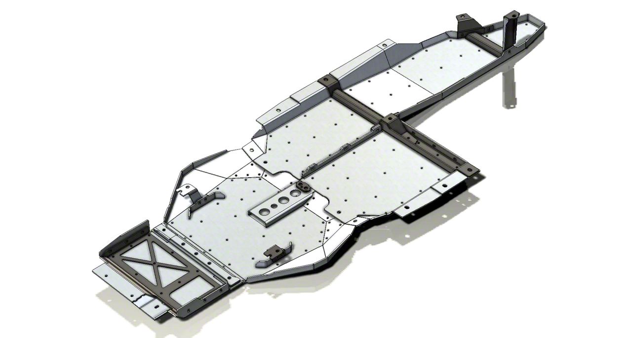 Undercarriage Guard. Go off-roading with peace of mind knowing your undercarriage is well protected with the Next Venture Motorsports Belly Skid Plates in Bare Aluminum. This set of skid plates gives superior protection to your Bronco’s sensitive and important components such as the engine, transfer case, transmission, fuel tank, and DEF tank. These skid plates also lessen the weight of your ride with the removal of the factory steel skid plate and other parts that these plates will replace. The removal of the factory skid plate gives you an added ground clearance of 3/4 inches helpful when traversing the trails.