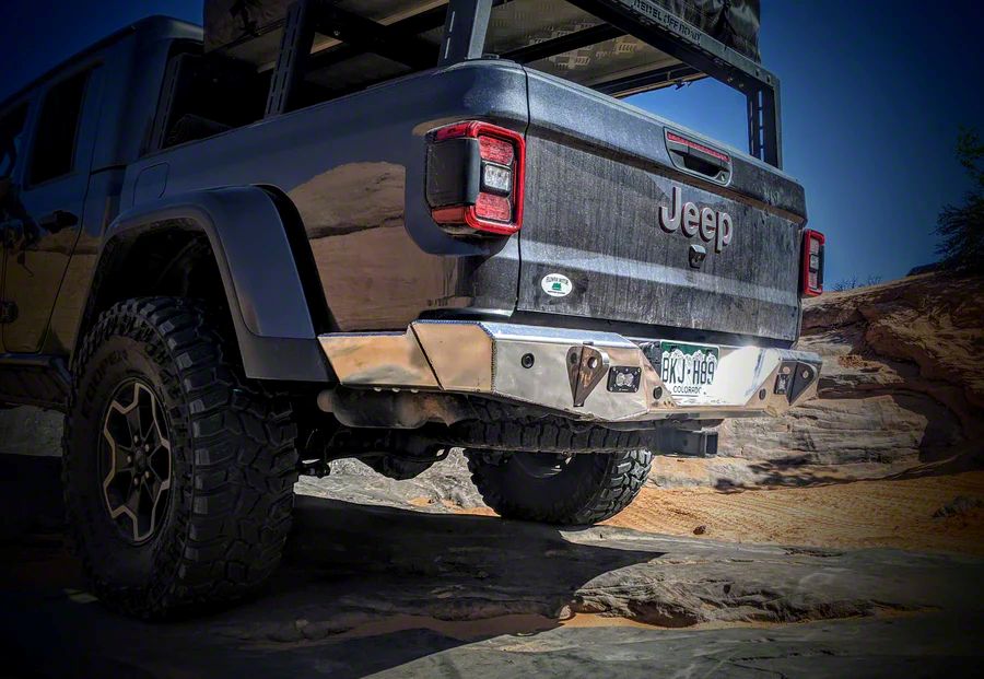 Application. This Next Venture Motorsports Featherweight Series Rear Bumper (Pre-Drilled for Backup Sensors, Bare Aluminum ) all 2020-2026 Jeep Gladiator JT models.