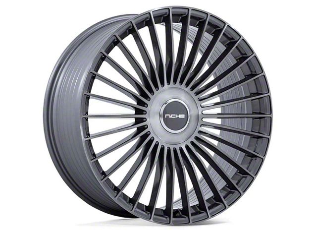 Niche Serene Gloss Titanium Brushed 6-Lug Wheel; 24x10; 30mm Offset delivers a bold and modern aesthetic, ideal for enthusiasts seeking a refined yet assertive look for their vehicle. With its standout design and distinct finish, this wheel enhances the vehicle's visual stance and street presence. The precise craftsmanship and premium aluminum build reflect Niche's dedication to quality and distinctive design. Whether parked or in motion, this wheel draws attention with its clean, aggressive styling.