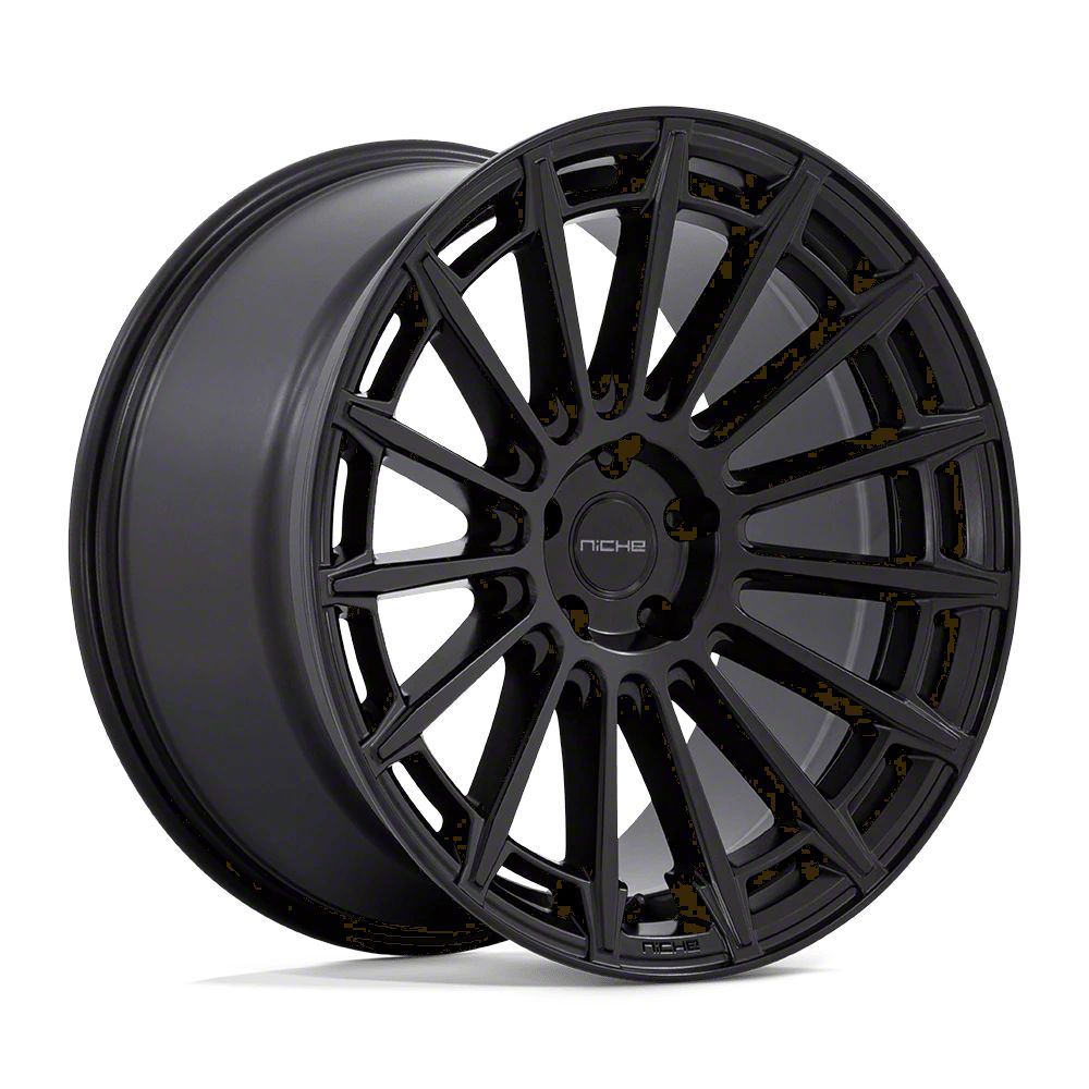 Niche Amalfi Matte Black Wheel; 20x10.5 The Niche Amalfi Matte Black Wheel combines a sleek, sophisticated design with premium construction that enhances the visual appeal and complements a wide range of vehicle styles. This wheel is perfect for those seeking to make a bold statement while maintaining elegance and robustness.