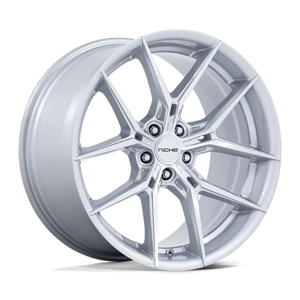 Niche Prodigy 5 Silver with Machined Face Wheel; 22x9; 38mm Offset is a perfect blend of style and rugged design, making it a standout choice for those looking to enhance their vehicle's aesthetic appeal. Its bold, dark metallic finish pairs seamlessly with a wide variety of vehicle styles, offering both modernity and durability. Built by Niche, this wheel is designed to elevate your vehicle's appearance with its robust presence.