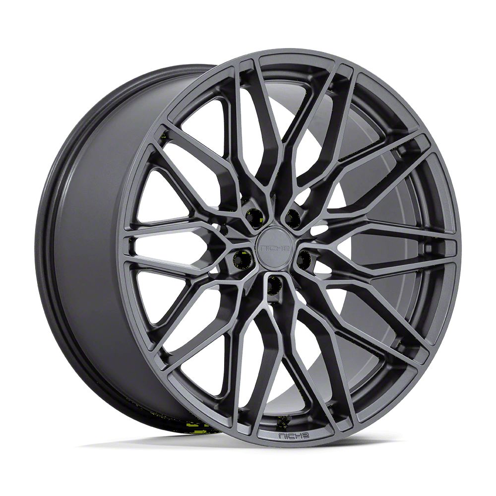 Niche Calabria 5 Matte Gunmetal Wheel; 20x10.5 The Niche Calabria 5 Matte Gunmetal Wheel combines a sleek, sophisticated design with premium construction that enhances the visual appeal and complements a wide range of vehicle styles. This wheel is perfect for those seeking to make a bold statement while maintaining elegance and robustness.