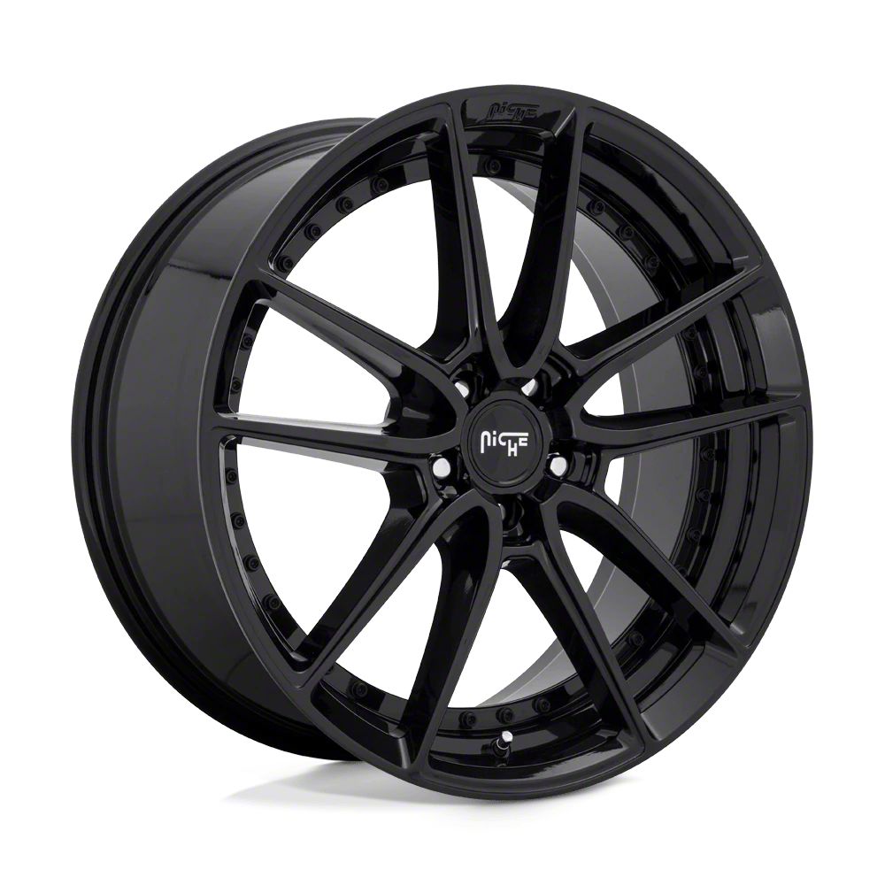 Niche DFS Gloss Black Wheel; 18x8 The Niche DFS Gloss Black Wheel combines a sleek, sophisticated design with premium construction that enhances the visual appeal and complements a wide range of vehicle styles. This wheel is perfect for those seeking to make a bold statement while maintaining elegance and robustness.