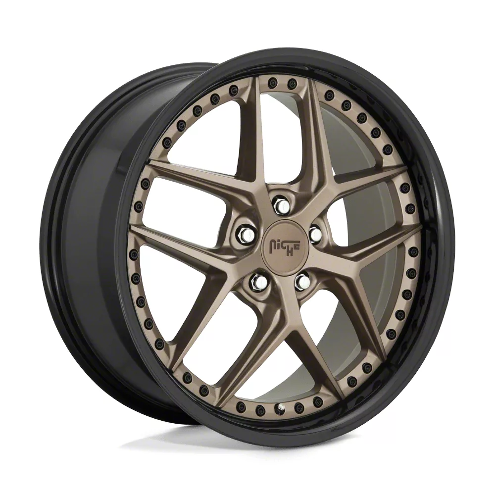 Niche Vice Matte Bronze with Black Bead Ring Wheel; 20x10.5 The Niche Vice Matte Bronze with Black Bead Ring Wheel combines a sleek, sophisticated design with premium construction that enhances the visual appeal and complements a wide range of vehicle styles. This wheel is perfect for those seeking to make a bold statement while maintaining elegance and robustness.