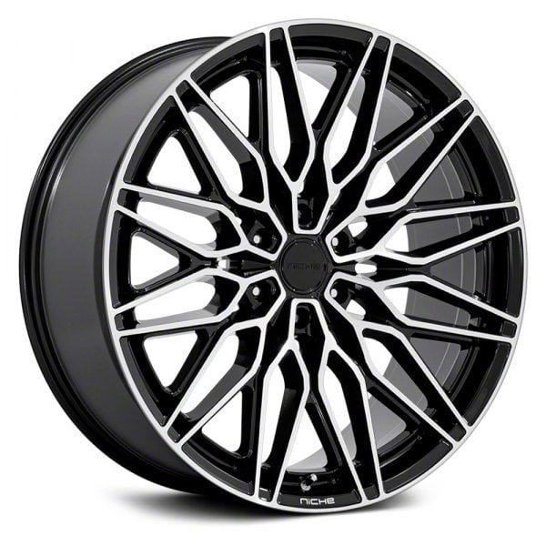 Niche Calabria 6 Gloss Black with Machined Lip 6-Lug Wheel; 22x9.5; 19mm Offset. The Niche Calabria 6 Gloss Black with Machined Lip 6-Lug Wheel offers a striking balance of style and refinement. Its unique design accentuates the vehicle's aesthetic, while the premium construction underscores its robust nature. This wheel is a perfect choice for those seeking both elegance and a strong visual statement.