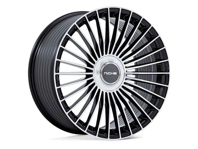 Niche Serene Gloss Black with Machined Face 6-Lug Wheel; 22x10; 30mm Offset is a wheel that stands out with its refined design and precision finish, making it a perfect match for vehicles that demand a sophisticated yet aggressive appearance.