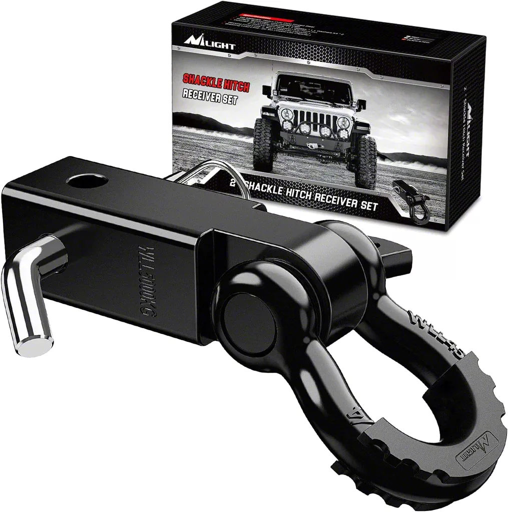 Detachable Isolator. The detachable black silicone isolator adds protection and reduces noise, while the electro-galvanized composition provides extra durability. Finished in a vibrant black powder coat, this shackle hitch receiver not only adds a touch of style but also offers corrosion resistance. Whether you're off-roading or simply need a reliable towing solution, this Nilight Shackle Hitch Receiver is engineered to meet your needs with exceptional performance and versatility.