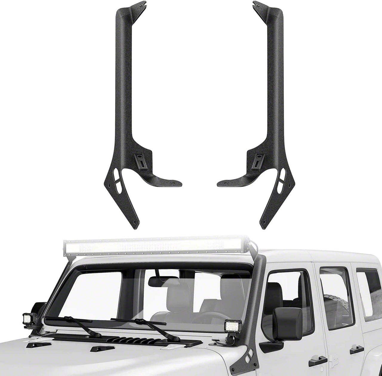 Application. These 52-Inch Light Bar and Pod Light Windshield Frame Mounting Brackets are designed to fit 2020-2025 Jeep Gladiator JT models, excluding Mojave. Includes Mounting Brackets Only. Please note light bar not included - sold separately.