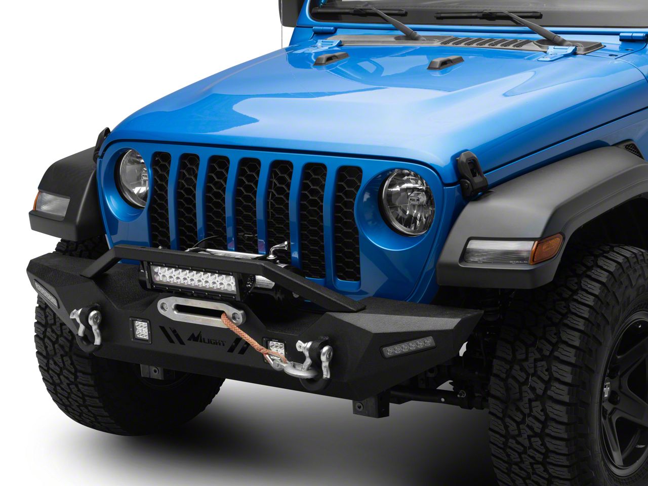 Warranty and Compatibility. Accompanied by a 2-year warranty coverage, this full-width winch mount front bumper with LED lights offers peace of mind and assurance in the quality and durability of the product. Specifically engineered for all 2020-2026 Jeep Gladiator JT Models, this bumper is designed for a straightforward installation, with no drilling required, ensuring a hassle-free upgrade that significantly enhances your vehicle's capabilities, protection, and appearance.