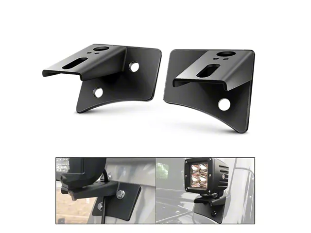 Application. The A-Pillar Light Windshield Hinge Mounting Brackets fit 2007-2018 Jeep Wrangler JK models.