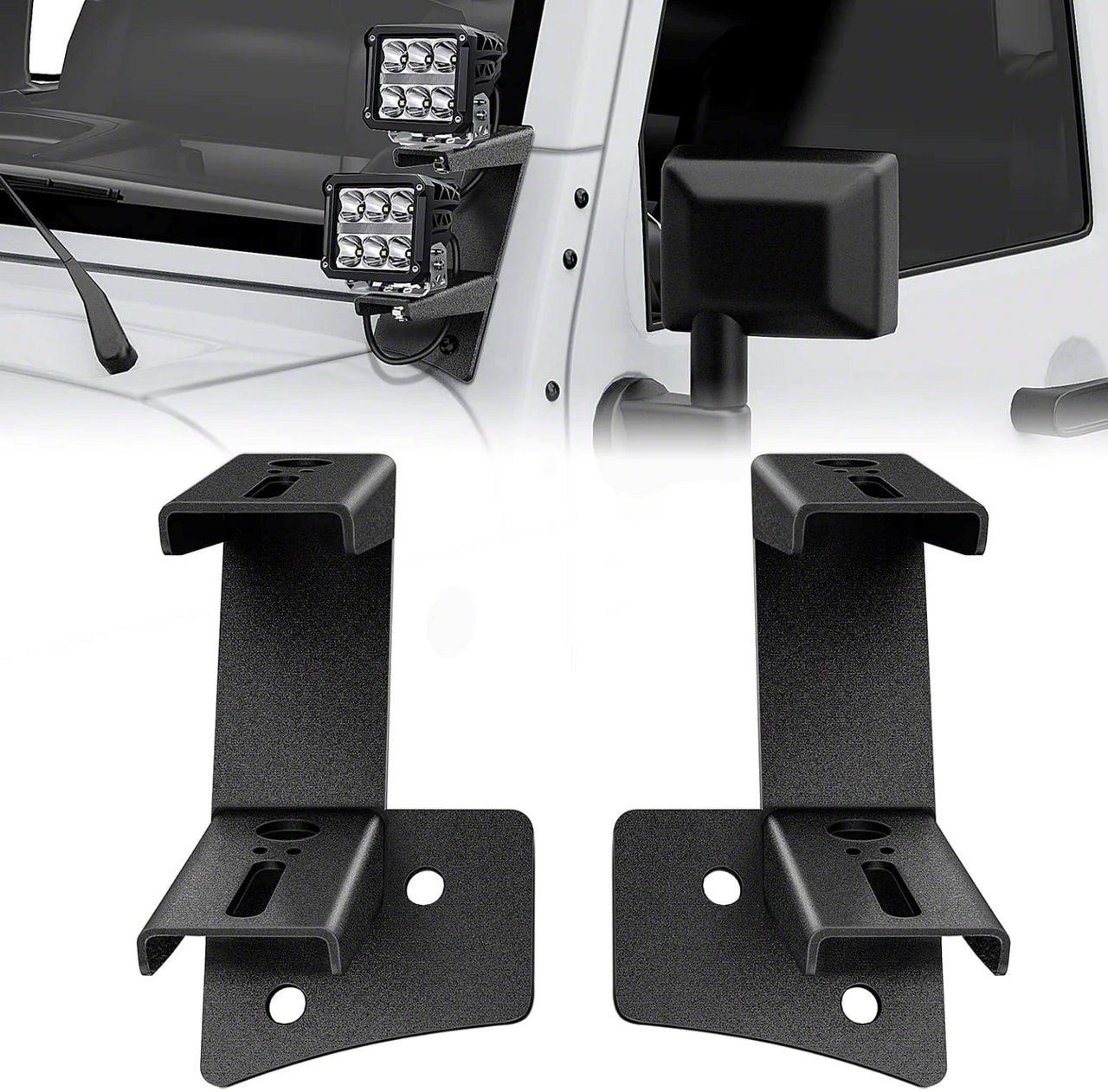 Installation. Putting these Dual A-Pillar Light Windshield Mounting Brackets on your Jeep Wrangler JK takes 1 hour to install.