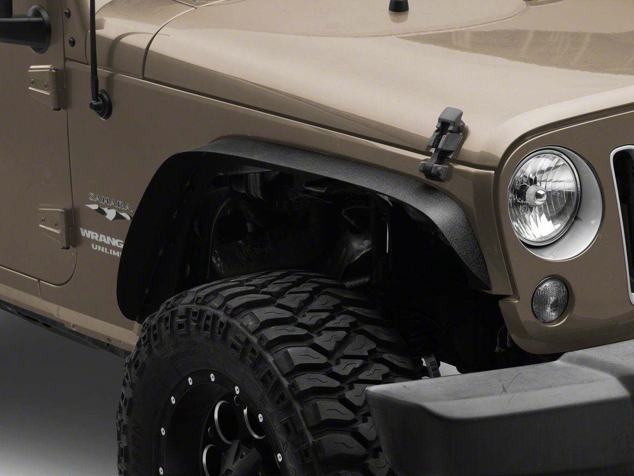 Construction and Appearance. Constructed from heavy-duty solid steel, these fender flares are built to last. The textured black powder-coat finish not only adds a sophisticated look but also offers excellent resistance against corrosion and wear, ensuring they remain in top condition even in harsh environments. This user-friendly feature makes them a practical choice for enhancing your Jeep Wrangler JK's protection and appearance.