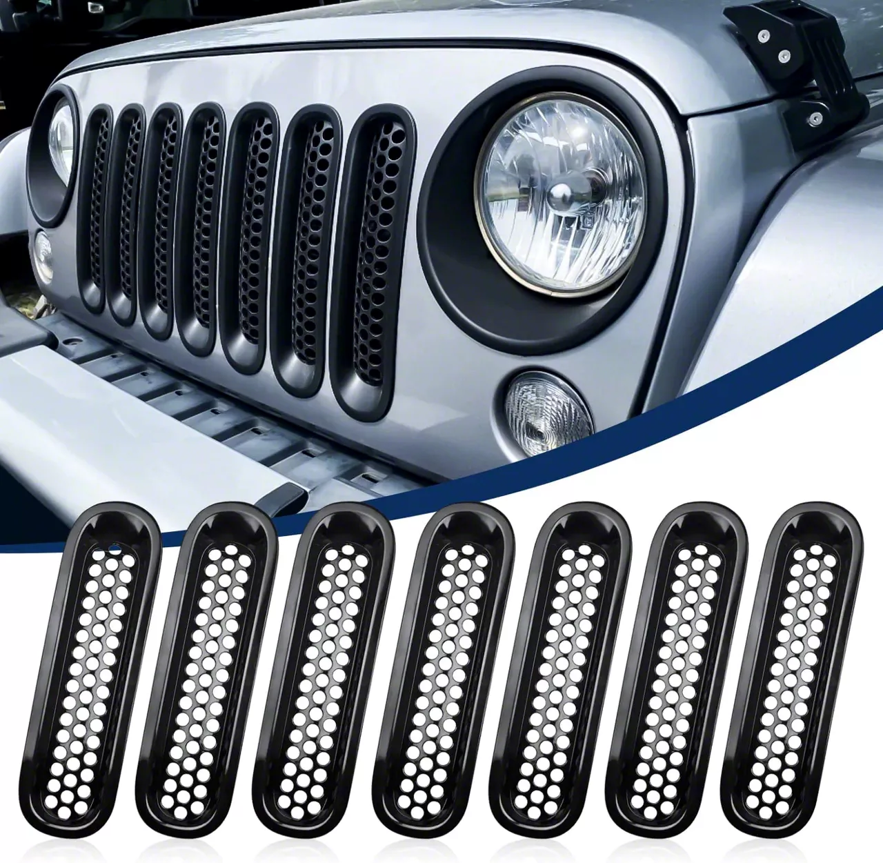 Stylish and Durable Grille Inserts. The Mesh Grille Inserts provide a sleek and protective upgrade for your Jeep Wrangler JK, enhancing both aesthetics and functionality. Specifically designed for 2007-2018 models, these inserts ensure a perfect fit and superior performance.