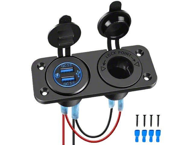 • (1) Dual QC 3.0 USB Charger With Cigarette Lighter Socket Panel