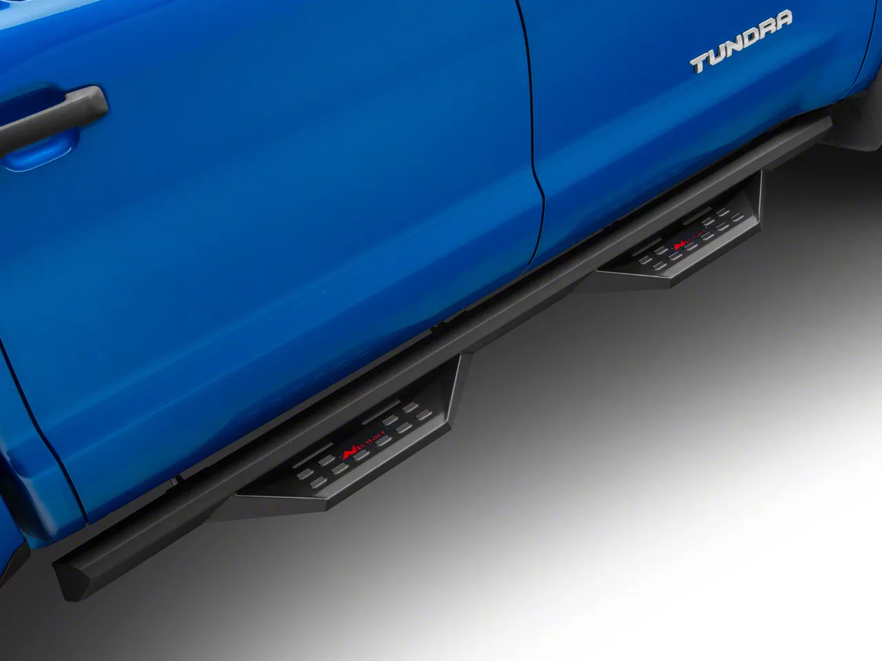 Bolt-On Style. Engineered with application- and vehicle-specific measurements, they ensure a perfect fit for your Tundra CrewMax. The simple bolt-on installation style makes adding these steps to your truck a hassle-free process, requiring no additional modifications.