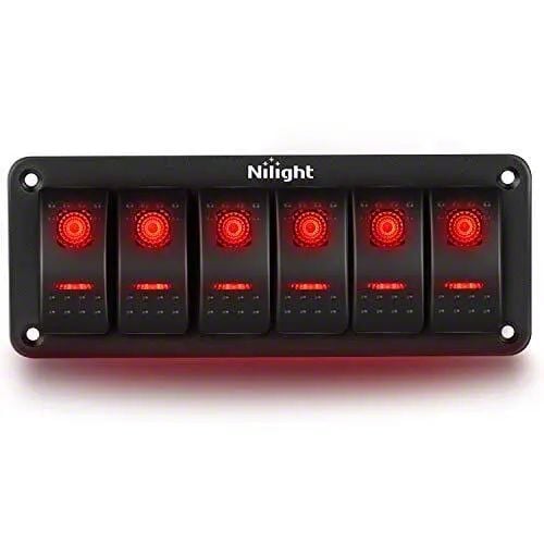 Versatile Switch Panel. The Nilight 6-Gang Aluminum Rocker Switch Panel with Rocker Switches provides a versatile solution for controlling various electrical components in your vehicle. It's designed for easy customization and organization of rocker switch labels.