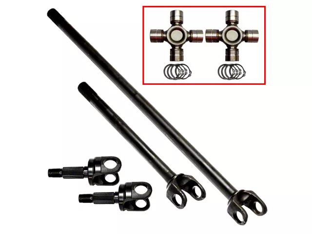 Technical Note. This front axle kit uses larger 1350 U-Joints (included). A 30-spline upgrade for JK Dana 30 is possible with aftermath locker only. This front axle kit also fits Dana 44 with custom aftermarket axle housing swap.