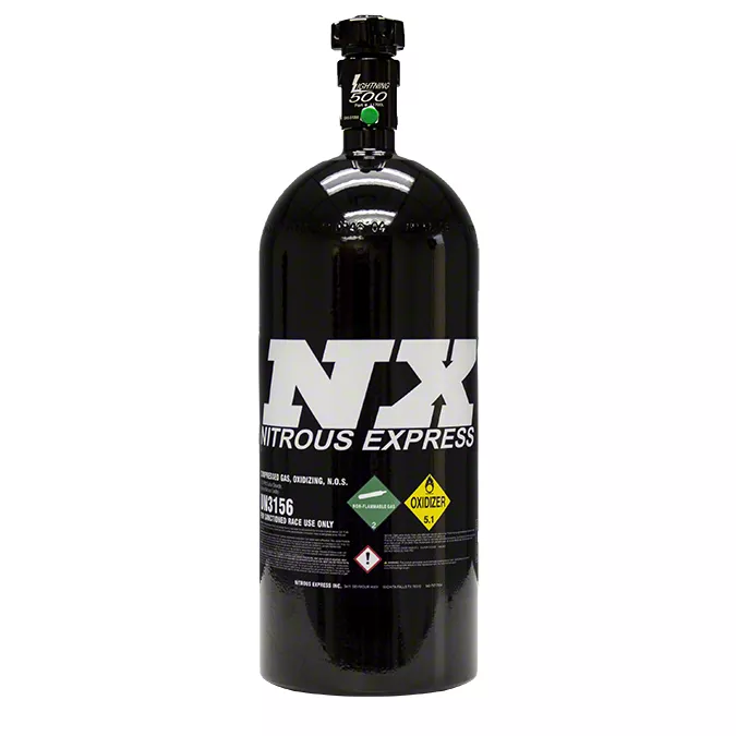 NX nitrous bottles feature a tough and attractive powder-coated finish. Includes the billet aluminum Lightning 500 bottle valve.