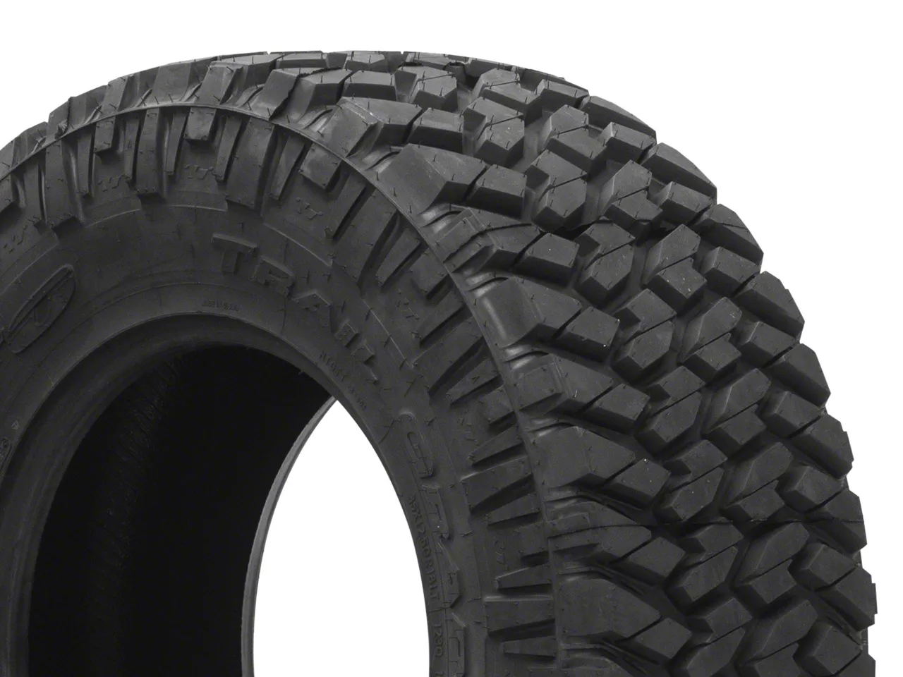 Specs. The Nitto Trail Grappler is intended for the extreme off-road enthusiast who isn't shy to drive their Wrangler through anything. In addition, Nitto engineered this 35x12.5R18 tire to reduce road noise by 36 percent over their Mud Grappler tire. The tread design balances voids and tread blocks which also contributes to the quiet ride, but also self-cleans. Stone ejector tabs also help to keep the contact patch clean, and the 3D tapered grooves on the edge of the tread blocks enhance off-road traction. Twin steel belts provide a smooth ride while you're on pavement and lengthen tread life. Deep siping reduce this risk of hydroplaning, and a "Z" groove down the center of the tire increases traction in rain and mud. This tire also features puncture resistant, 3-ply polyester reinforced sidewalls with deep side lugs. The siped side lugs add traction in aired-down driving situations as well as in mud and snow. There are two sidewall patterns, so you can choose which look will accent your rig. Nitto backs their tires with a 45,000 mile warranty for your peace of mind.