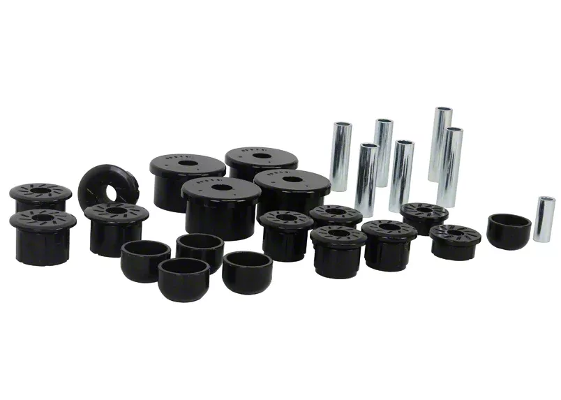 Complete Suspension Refresh. The Nolathane Vehicle Master Bushing Kit is a comprehensive solution designed to restore and upgrade your 1984 to 2001 Jeep Cherokee XJ's suspension. This all-in-one kit replaces worn-out rubber bushings with high-performance polyurethane components to dramatically improve ride quality, steering precision, and suspension durability.