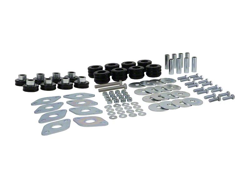 Ideal and Robust Reinforcement. The Nolathane Body Mount Bushing Kit with Hardware is designed to restore and enhance the suspension geometry of your Jeep Wrangler JK 2-Door. They offer improved steering response, better alignment control, and superior durability compared to factory bushings, making them ideal for towing, off-roading, or daily driving.