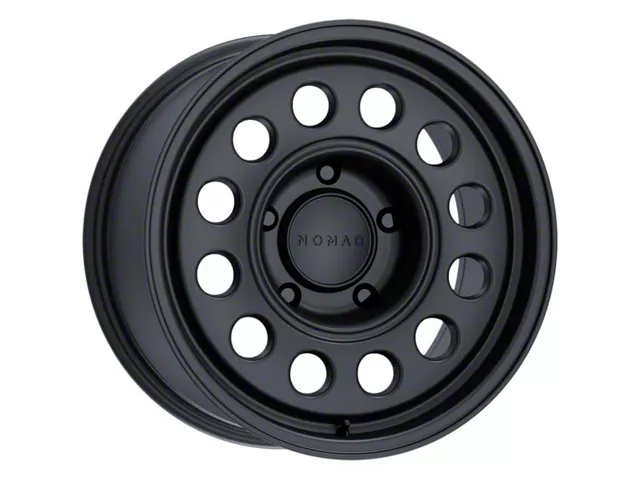 Nomad Wheels Convoy Satin Black 5-Lug Wheel; 17x8.5; 0mm Offset exudes a captivating aesthetic appeal that seamlessly complements various vehicle styles. The craftsmanship of Nomad Wheels ensures a robust and premium feel, making it a standout choice for discerning drivers.