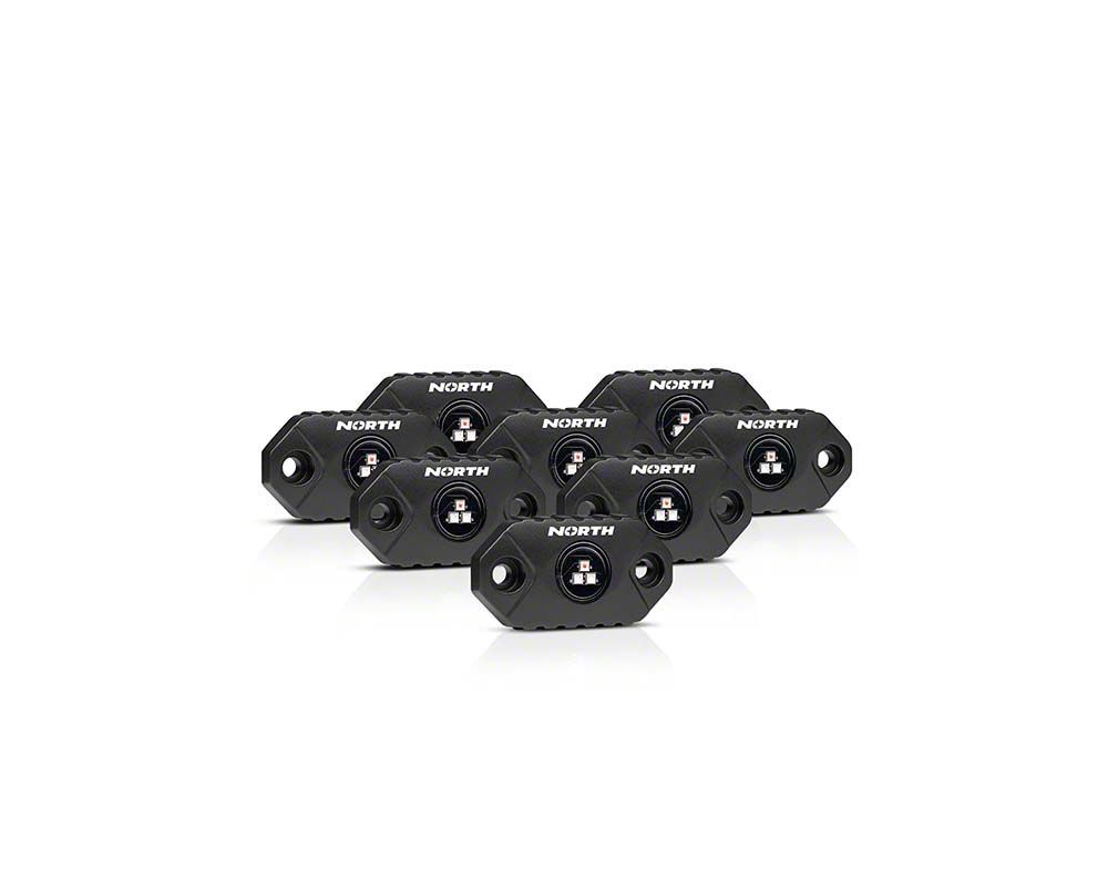 Description. North Lights 6-Piece or 8-Piece Rock Light Kit allows you to select the color you want to display simply with the touch of a button via Bluetooth app on your phone or ipad. Allow the LED rock lights to change color to the music or through preset options with millions of different color options available.
