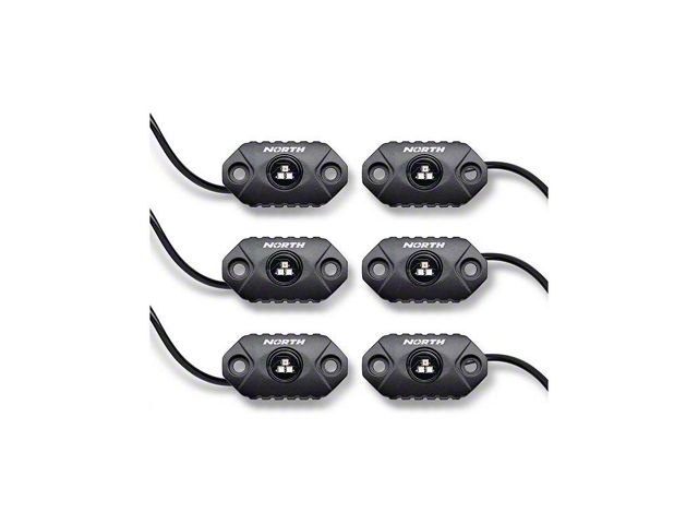 Bright and Durable LED Rock Lights. The North Lights 8-Piece LED Rock Lights provide enhanced illumination and visibility, making them a great addition to any vehicle. Whether used for off-road adventures or ambient lighting, these rock lights are designed to withstand extreme conditions, ensuring consistent performance in harsh environments. Featuring RGB lighting, they allow customization to match any mood or vehicle aesthetic.