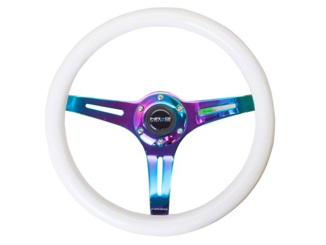 Striking Steering Style. The NRG Innovations Classic Wood Grain 350mm Steering Wheel is a standout upgrade for any driver looking to enhance both the form and function of their vehicle’s interior. With its vibrant neochrome finish and captivating blue glow-in-the-dark accents, this wheel brings a custom flair that stands out in any lighting condition. Engineered for a superior driving feel, it offers precise control and a comfortable grip for everyday and spirited driving.