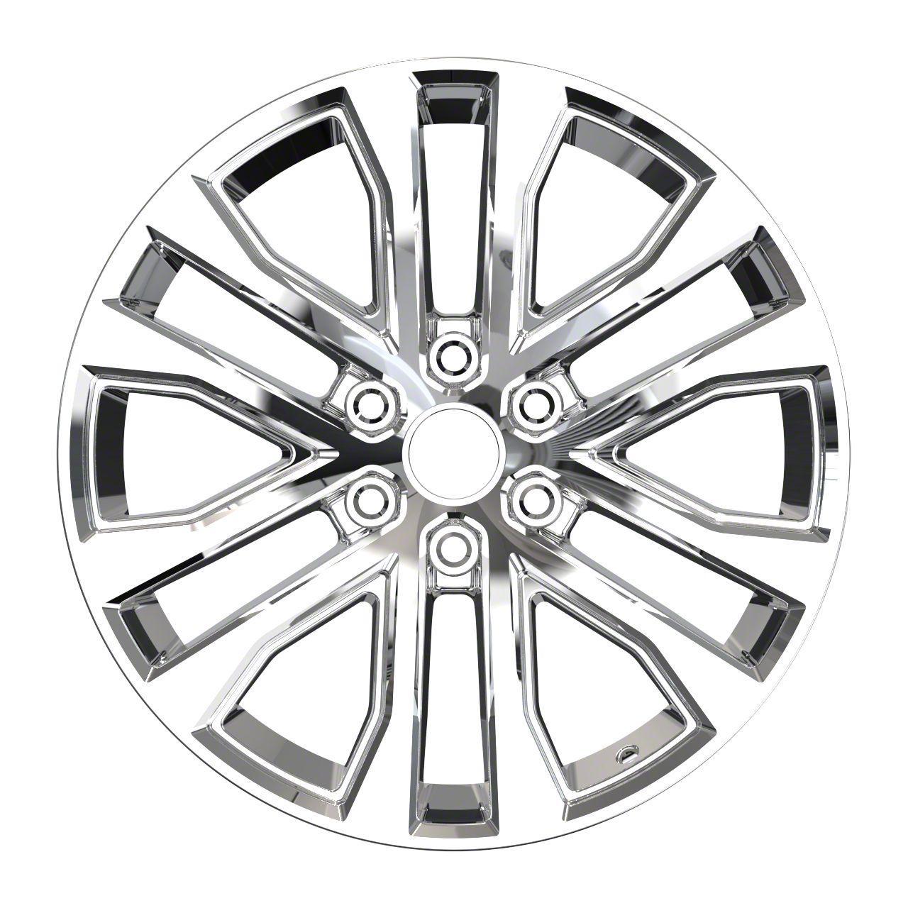 The 20x9 OE Concept F-150 XLT Replica Chrome 6-Lug Wheel; 20x9; 30mm Offset is completed in a polished chrome finish that will make everyone green with envy. For added protection and good looks, this wheel features a durable clear coat that is tough enough to stand up against the hazards of everyday driving.