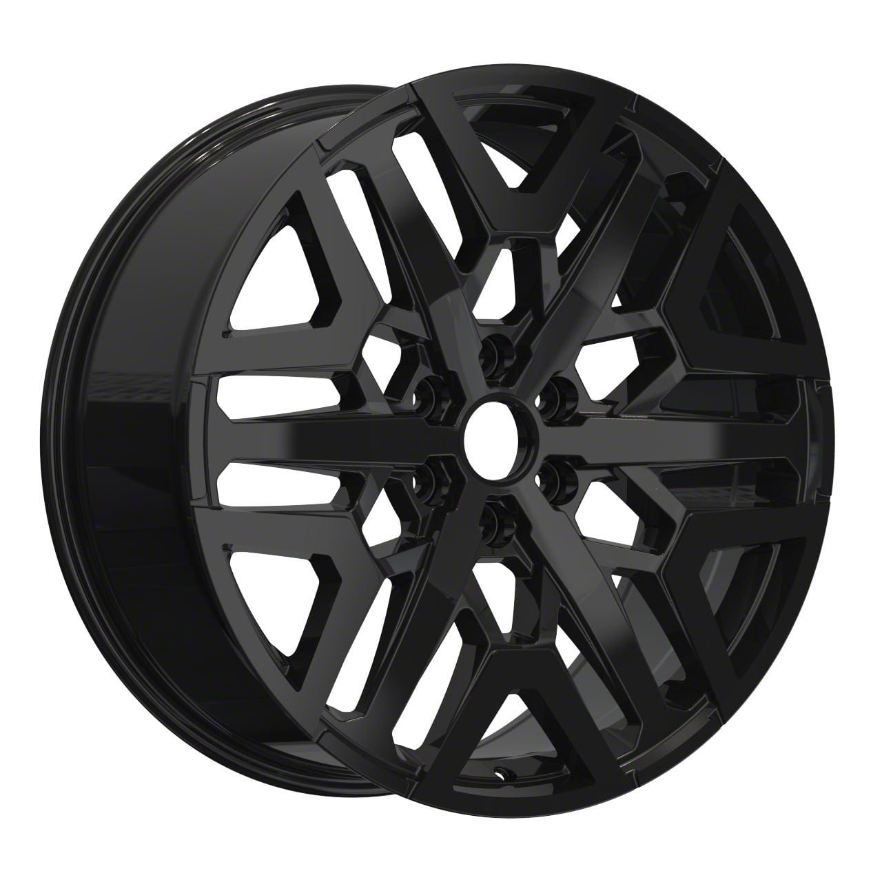 The 22x9.5 OE Concept Ford Expedition Unlimited Replica Gloss Black 6-Lug Wheel; 22x9.5; 44mm Offset is completed in a gloss black finish that will make everyone green with envy. For added protection and good looks, this wheel features a durable clear coat that is tough enough to stand up against the hazards of everyday driving.